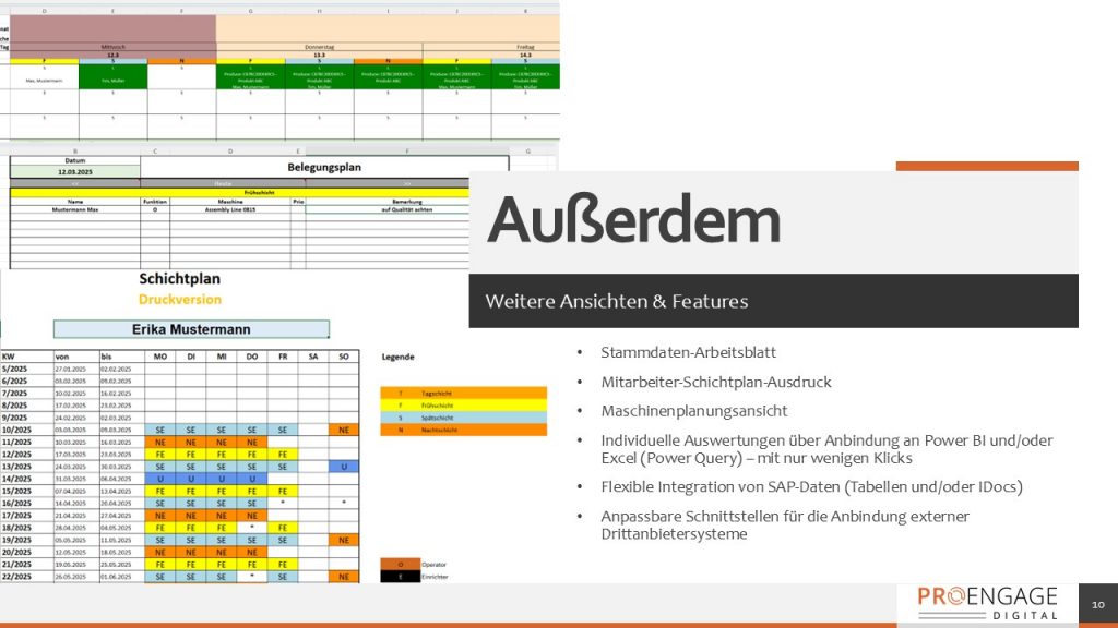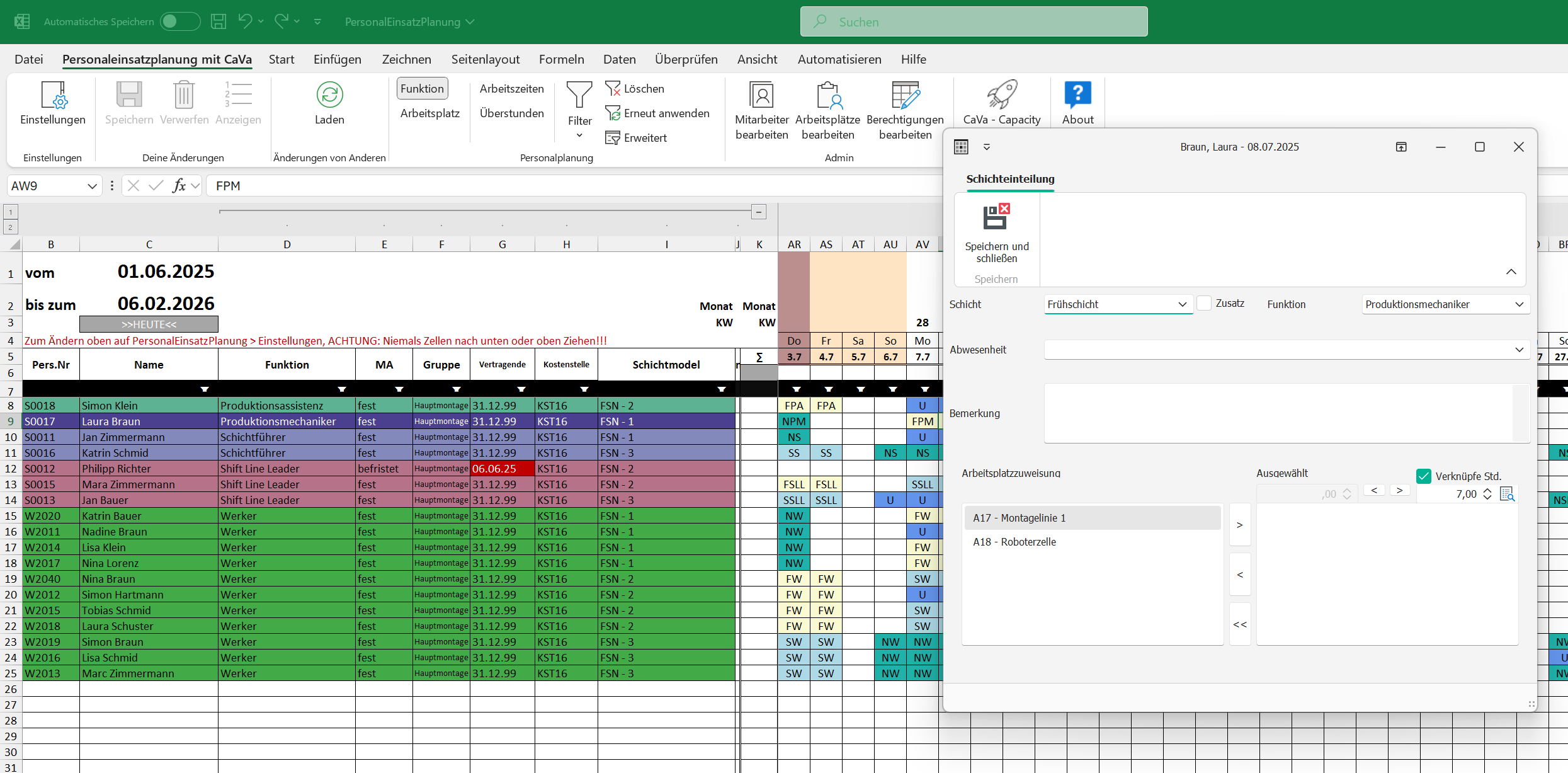 Kapazitäts- und Schichtplanung direkt in Excel mit eigener Datenbank im Unternehmen.